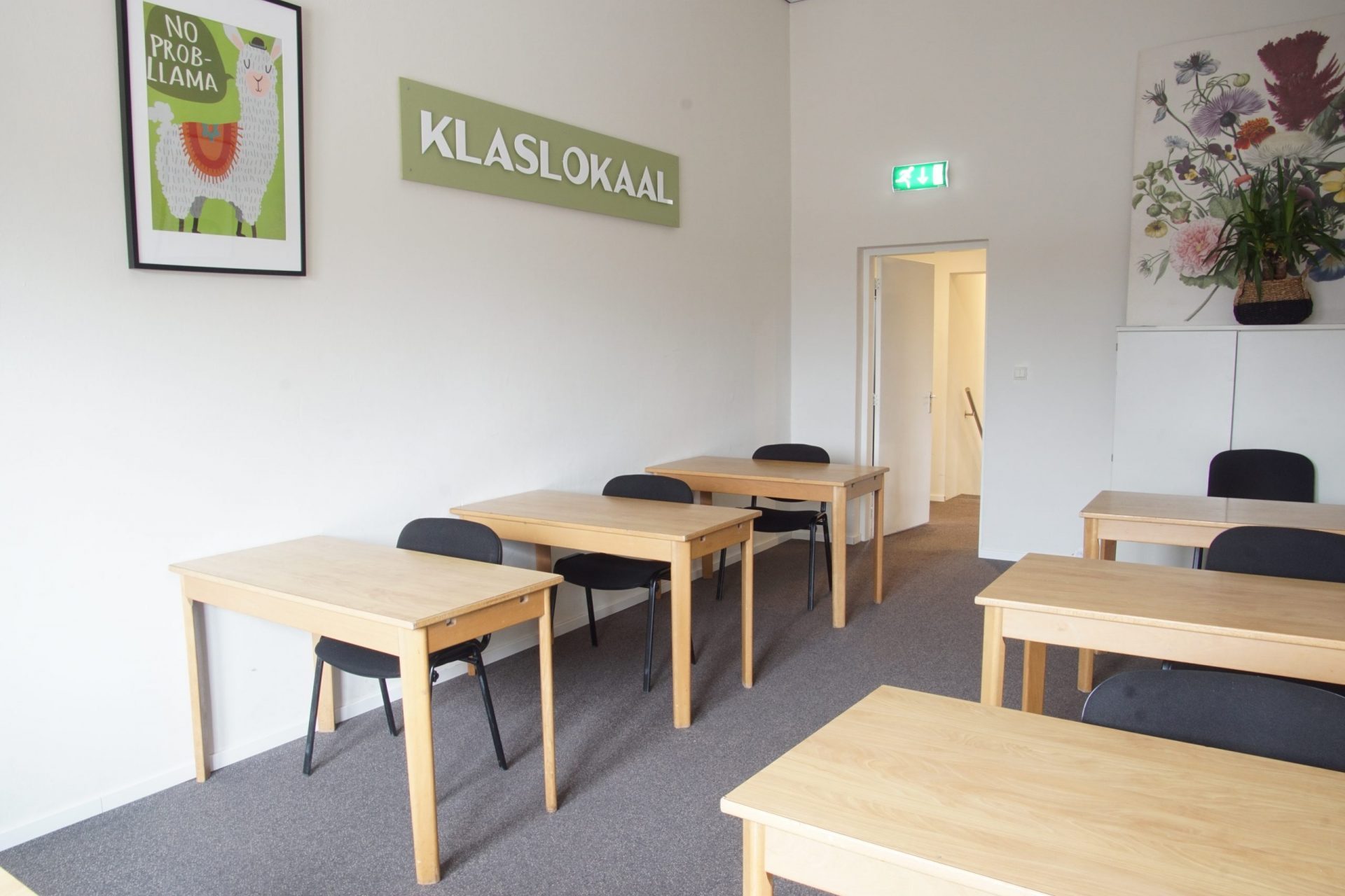 Deze ruimte bevindt zich op de 1e verdieping en is geschikt voor max. 20 personen. ( Lift aanwezig) Geheel naar uw wens kunnen we deze zaal klaarzetten in een klas opstelling of vergader opstelling, ideaal voor kleine bijeenkomsten, bijles, taal cursussen of een ruimte voor uw BHV trainingen.